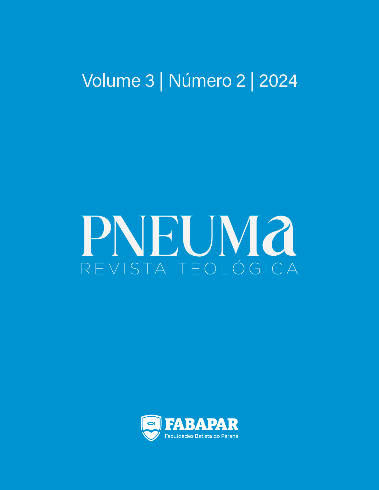 v. 3 n. 1 (2024)É com grande alegria que apresento mais um número da Pneuma: revista teológica, que é a revista discente de Teologia das Faculdades Batista do Paraná (FABAPAR). Essa revista, que foi iniciada no ano de 2022, é fruto do empenho conjunto de docentes e discentes da FABAPAR, visando não apenas o aperfeiçoamento da iniciação científica da instituição, com a abertura desse espaço de publicação, mas também o incentivo ao compartilhamento dos resultados de pesquisas tanto dos nossos alunos, como de alunos de Teologia de outras instituições.